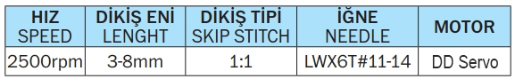 Direct Drive Kafadan doğrudan tahrikli motor ile donatılmıştır,tek iplik zincir dikişi.Blindstitsch modunun benimsenmesi ile dikilen dikiş kumaş yüzeyinden görünmez, bu da kıyafetleri çok daha temiz ve zarif tutar.